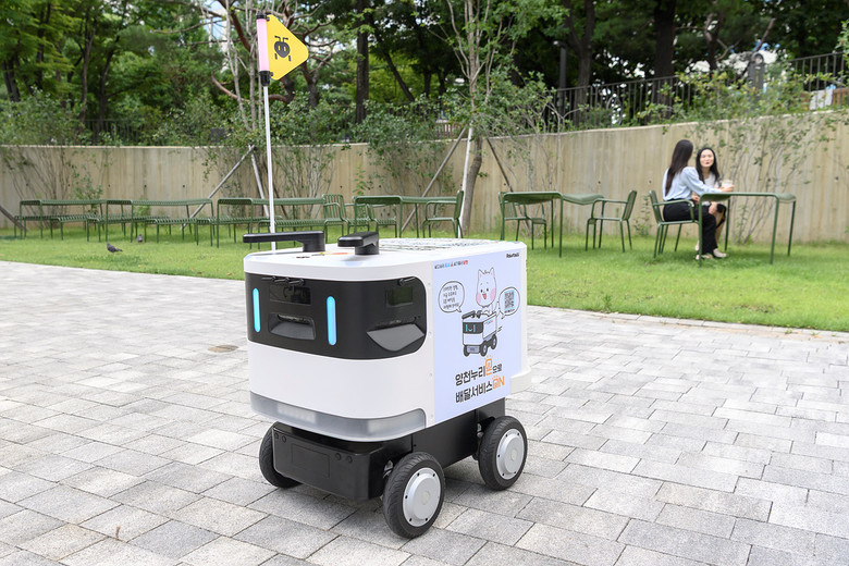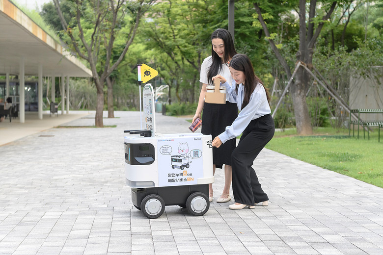 사용법도 간단하다. ‘로보이츠’ 앱으로 주문하면, 로봇이 매장에서 음식을 수령해 공원 안 지정된 장소까지 배달한다. 도착하면 앱에 알림이 뜨고, ‘로봇 문 열기’ 버튼을 눌러 음식을 수령하면 된다.