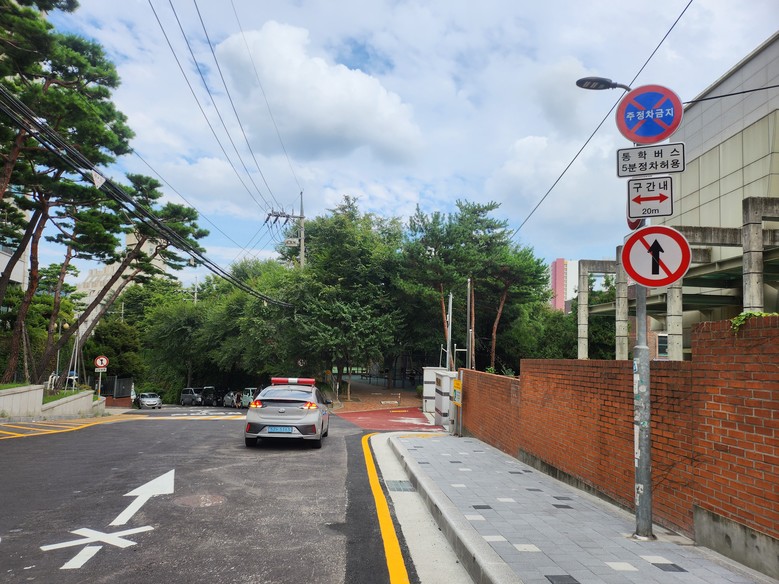 충신유치원은 승·하차 구간과 횡단보도 대기공간에 디자인 보도블럭을 설치해 학부모 차량 혼잡을 줄이고, 보광초에서 해제된 교통단속용 카메라를 이전해 실효성을 강화한다.