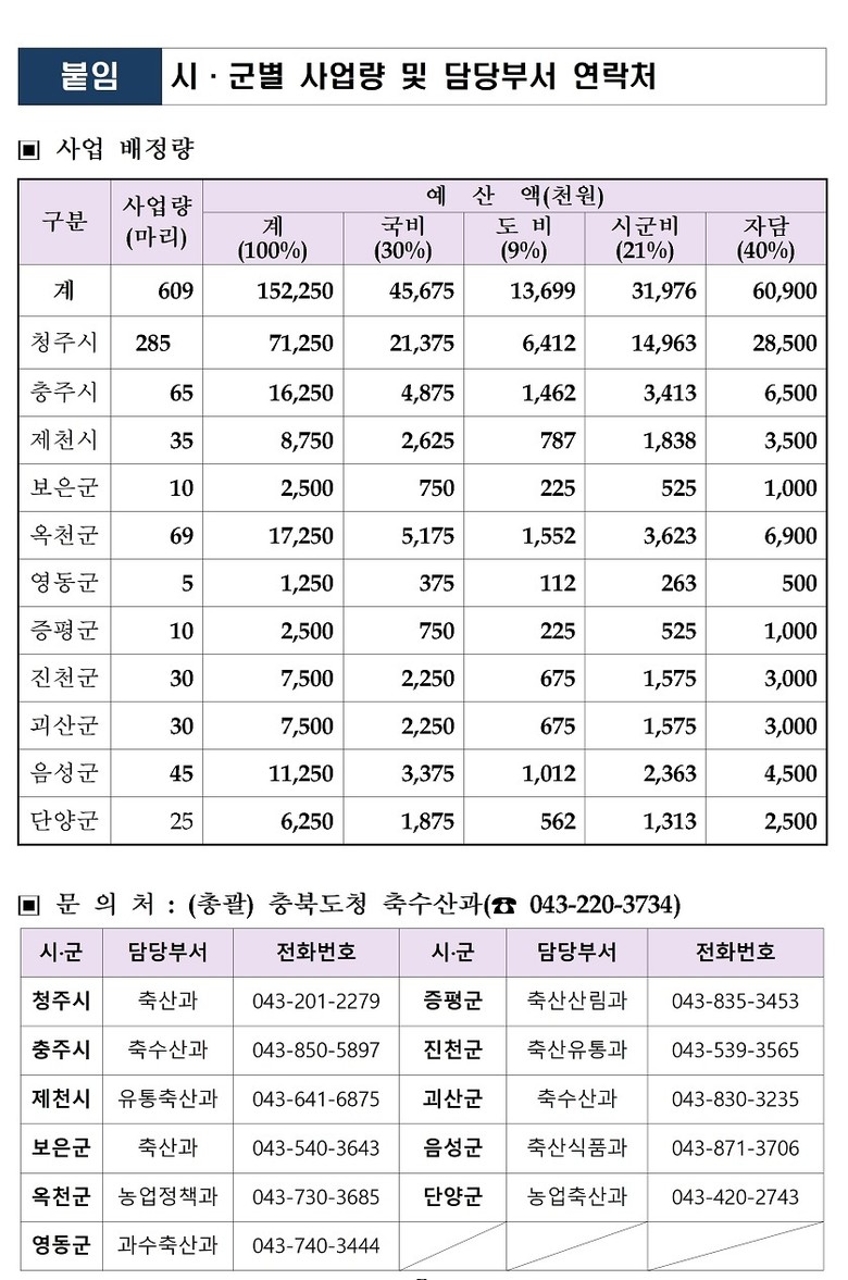 지원은 총 609마리 한정으로 진행되며, 예산 소진 시 조기 마감될 수 있다. 용미숙 충북도 농정국장은 “이번 지원이 책임 있는 입양 문화 확산과 성숙한 반려문화 정착의 계기가 되길 바란다”면서 ”앞으로도 동물복지 향상과 유기동물 발생 예방을 위해 다양한 정책을 지속 추진할 계획“이라고 말했다.