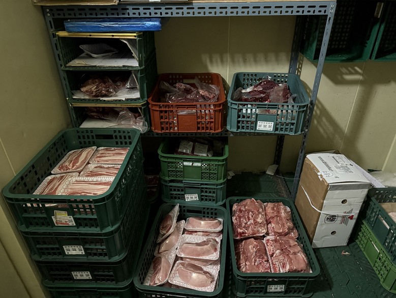 | ▲ 창고에서 발견된 표시사항이 없는 무표시 축산 |