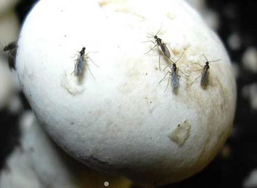 버섯파리는 갓과 대에 알을 산란하고, 부화한 유충이 균사를 갉아먹어 품질 저하 및 수량 감소를 초래하며, 심할 경우 2차 병해로까지 이어질 수 있다.