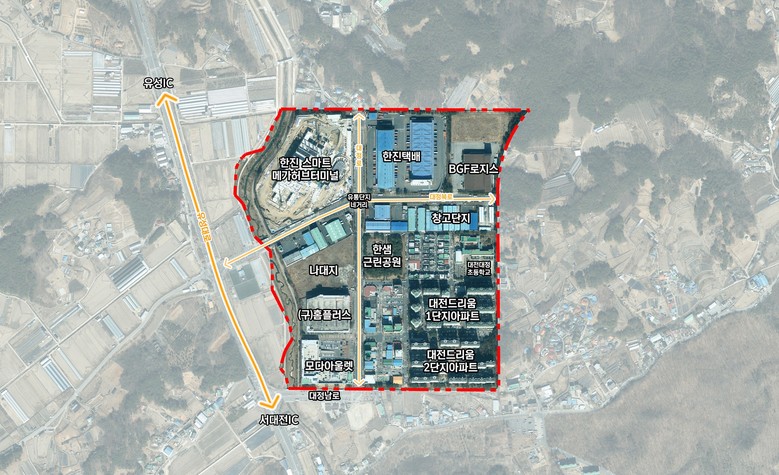 대전종합물류단지는 2003년 유성구 대정동 일원 46만㎡ 규모로 조성돼, 현재 한진 대전스마트 메가허브터미널과 모다아울렛 등 25개 물류·유통기업이 입주한 지역 핵심 거점이다. 그러나 준공 후 20년이 지나면서 대형 화물차 진출입 불편, 노후 기반시설 등 개선 필요성이 꾸준히 제기돼 왔다.