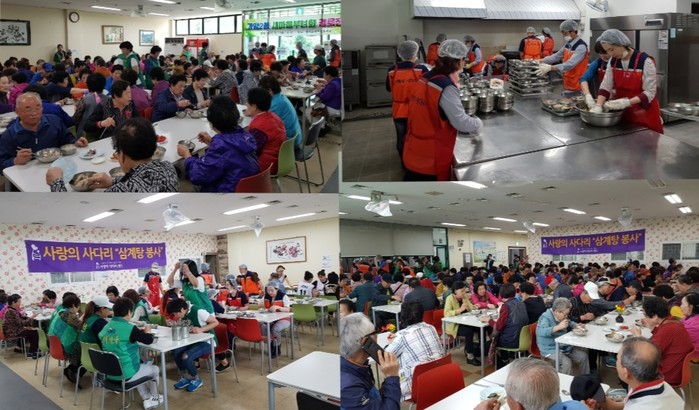 또한 삼계탕 봉사를 총괄한 유희자 단장은 “가시오가피, 엄나무, 인삼, 황기, 밤, 대추를 넣은 보양식인 삼계탕을 맛있게 드시는 어르신들께서 더 건강하게 사시길 바란다.“고 말했다.