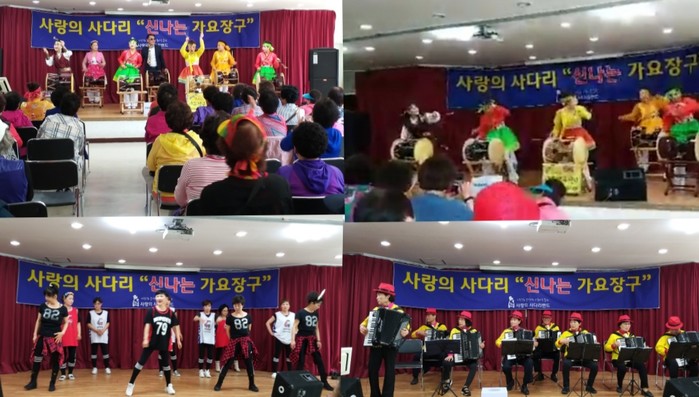 [세계타임즈 이장성 기자] 다양한 봉사를 꾸준히 실천하고 있는 SNS 대전시 봉사단체 사랑의 사다리 밴드(리더 이정제)는 4일 오전11시, 동구 정다운어르신복지관(관장 윤경환)에서 약400명의 가양2동 어르신들을 모시고 위문공연 및 삼계탕 봉사로 사회적 효행을 실천 하였다.