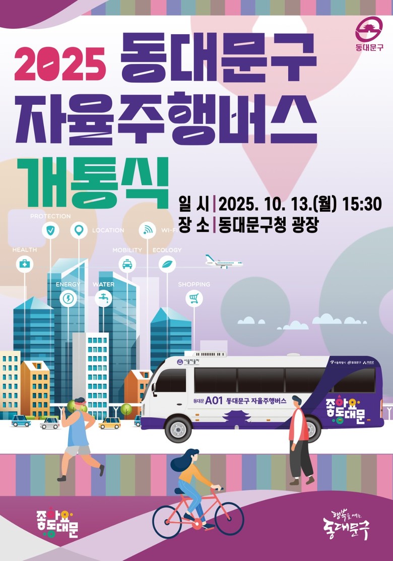 이필형 동대문구청장은 “자율주행버스는 미래 교통 인프라 구축의 중요한 전환점이 될 것”이라며 “동북권 첫 지역동행 자율주행버스인 만큼 구민 여러분의 많은 관심과 적극적인 이용을 부탁드린다.”라고 전했다.