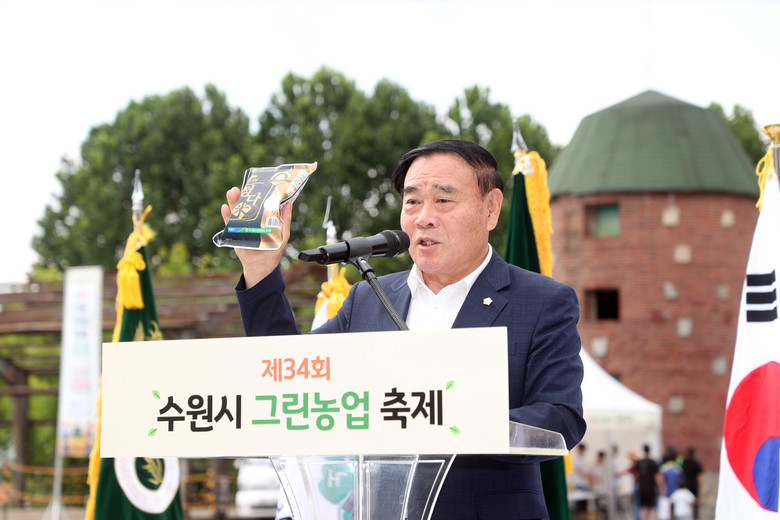 이재식 의장은 축사를 통해 “수원의 농업을 지키고 발전시켜 오신 농업인 여러분께 깊은 감사와 존경의 마음을 전한다”며, “농업은 단순히 먹을거리를 생산하는 일을 넘어, 우리의 삶과 환경을 지키는 소중한 뿌리”라고 강조했다. “이번 축제가 도시 속 농업의 의미를 다시 생각해 보고, 친환경 농업의 중요성을 나누는 뜻깊은 자리가 되길 바란다”고 덧붙였다.