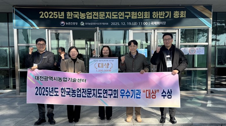 [대전 세계타임즈=이채봉 기자] 대전시 농업기술센터(소장 이효숙)는 농촌진흥청이 주관한 ‘2025년 전문지도연구회 우수기관 평가’에서 대상과 ‘2025년 농업인대학 우수기관 선정’에서 최우수상을 동시에 수상했다.