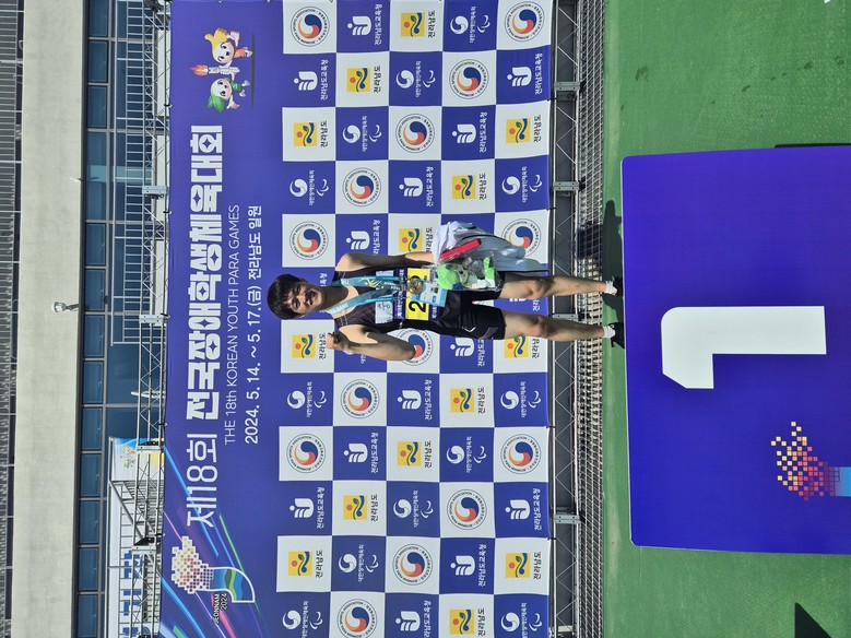 [논산시 세계타임즈=백택기 기자] 논산중학교(교장 이우열) 2학년 오환빈 학생이 지난 14일(화)~17일(금) 전라남도 목포에서 개최된 제18회 전국장애학생체육대회에서 충청남도 대표로 출전하여 육상 트랙 멀리뛰기 금메달, 100m에서 동메달을 획득했다.