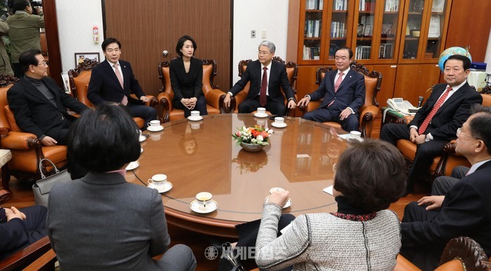 국민의당 김동철 원내대표와 박주선 국회 부의장 등 중립파 의원들이 19일 오전 서울 여의도 국회 부의장실에서 바른정당과의 통합 문제에 대해 논의하기 위해 모임을 갖고 있다. 이날 모임에는 김동철 원내대표, 박주선 부의장, 이용호 정책위의장, 장병완, 황주홍, 박준영, 윤영일, 장정숙, 최도자, 김종회, 김경진, 김수민 의원 등이 참석했다. 2017.12.19.