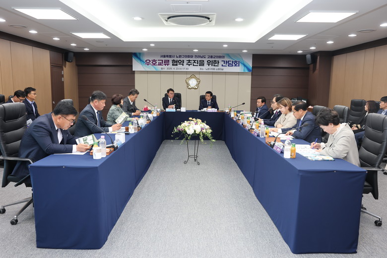[고흥군 세계타임즈=우덕현 기자] 고흥군의회(의장 류제동)는 지난 4월 23일, 서울특별시 노원구의회(의장 손영준)를 방문해 양 의회 간 자매결연 협약 체결을 위한 간담회를 갖고, 도농 간 상생 협력을 위한 실질적인 교류 방안에 대해 논의했다.