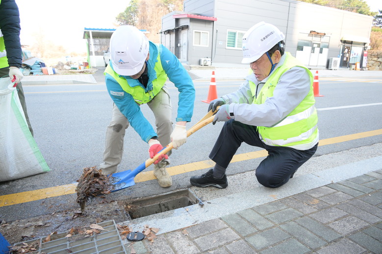 우선 최민호 시장은 도로 정비 현장의 배수구 덮개를 열고 내부에 쌓인 이물질을 제거하면서 도로보수원의 업무를 도왔다.