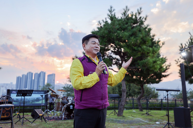 [동대문구 세계타임즈=이장성 기자] 서울 동대문구(구청장 이필형)는 지난 27일 저녁, 동대문구의 명소인 배봉산 정상에서 ‘배봉산 노을음악회’를 성황리에 마쳤다고 밝혔다.
