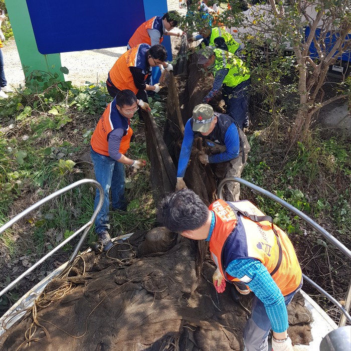 이날 봉사에는 사랑의 사다리 회원들 30명이 참석하여 신상교 일대 수변 환경정화 봉사와 대청호 상수원 일대에 설치된 불법 폐그물을 약 2톤가량 수거를 하였다.