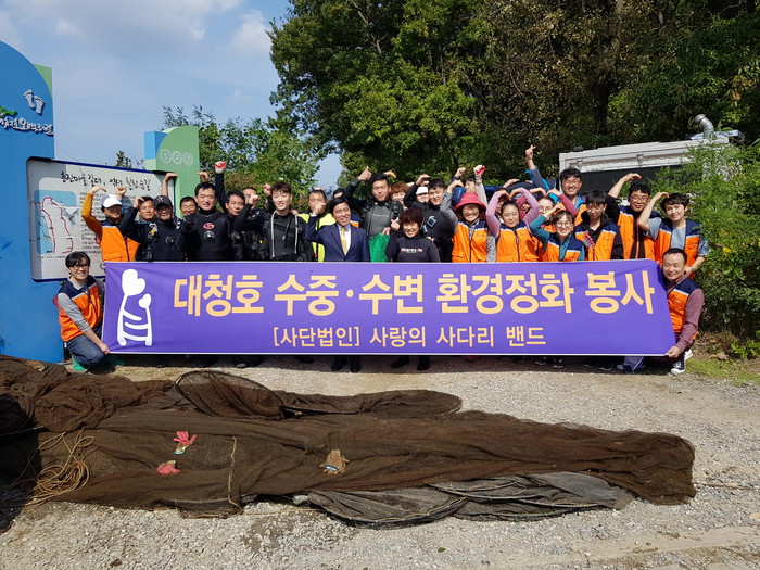 황인호 동구청장은 “대청호 상수원 수중·수변 환경정화 봉사를 해주신 사랑의 사다리 밴드 회원분들께 진심으로 감사드린다.“고 말했다.