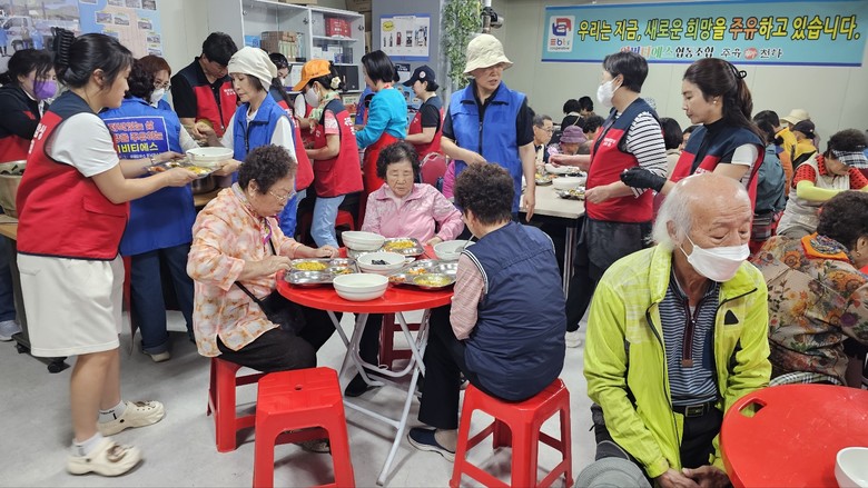이번에도 무료급식은 . 120여분의 어르신들에게 정성을 다해모셨다 현장에서 힘들지 않으시냐는 질문에 한 봉사자님이 "보세요.어르신들이 맛있게 드셨다시며 웃고 가시잖아요.저희는 그것면 됩니다."라고 말씀 하셨고 다들 끄덕이시며 뜻을 함께해 주셨다.