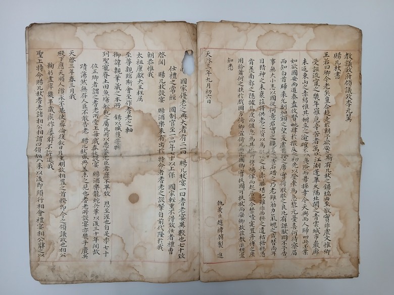 - 안여택의 노인직 교지, 은진송씨의 청려장 등 유물 전시 - [대전 세계타임즈=이채봉 기자] 대전시립박물관(관장 김선자)은 3월 24일(화)까지 상설전시실에서 2026년 첫 번째 ‘박물관 속 작은 전시’로 조선시대의 노인 예우 정책과 관련 유물을 소개한다.