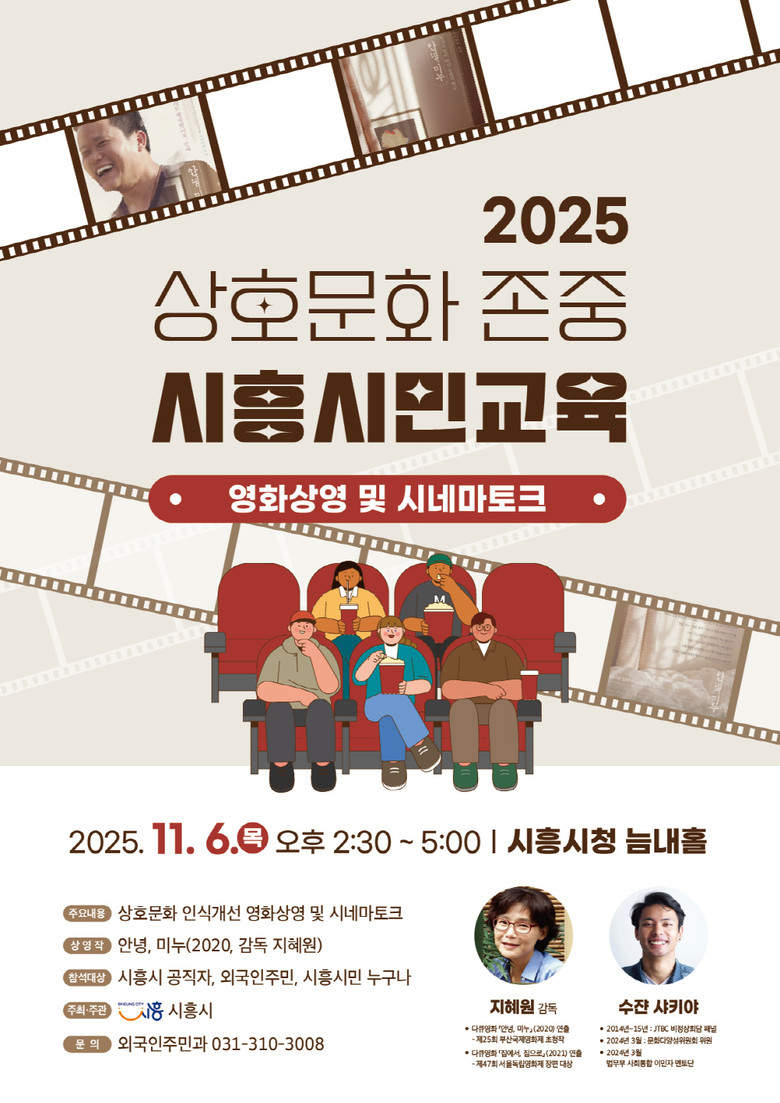 시 관계자는 “이번 시민교육은 공직자와 시민이 함께 참여하는 문화공감 프로그램으로, 상호문화 존중과 포용의 가치를 일상에서 확산시키기 위한 자리”라며 “영화를 통해 이주배경주민의 삶을 이해하고 서로 공감하는 계기가 되길 바란다”라고 밝혔다.