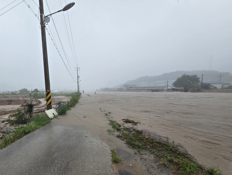 | ▲ [청담천 2지구] 현장사진(25.8.12~13.) 저지대 제방 범람 |
