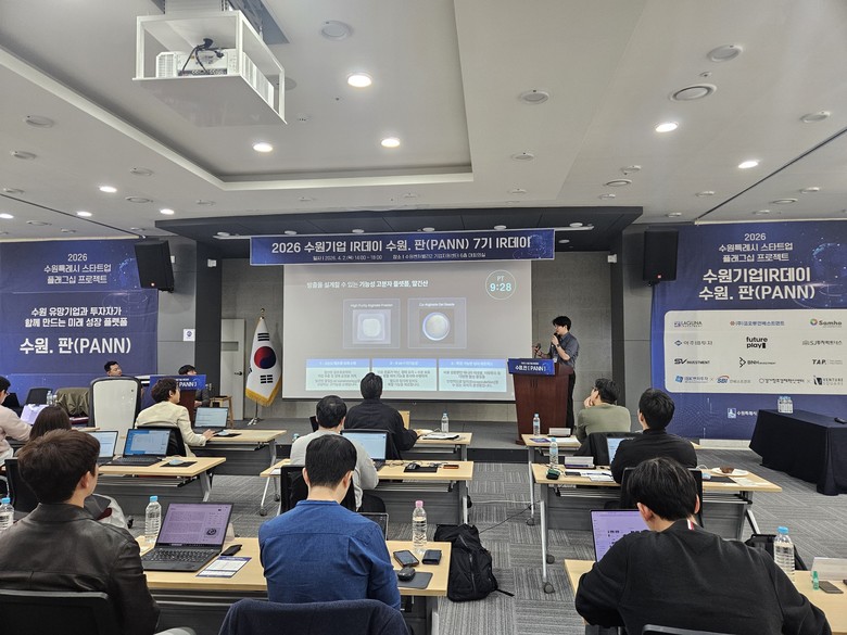 [수원시 세계타임즈=송민수 기자] 수원특례시(시장 이재준)가 2일 수원벤처밸리2 기업지원센터 대회의실에서 2026 수원기업 아이알(IR)데이 수원.판(PANN) 7기를 개최했다.