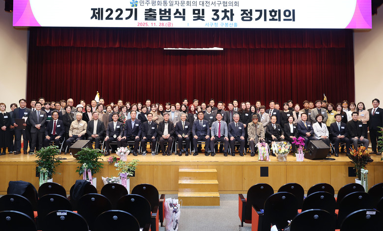 [서구 세계타임즈=이채봉 기자] 민주평화통일자문회의 대전서구협의회(회장 김덕건)은 28일 서구청 구봉산홀에서 서철모 서구청장 및 협의회 자문위원 등 200여 명이 참석한 가운데 제22기 출범식 및 정기총회를 개최했다.
