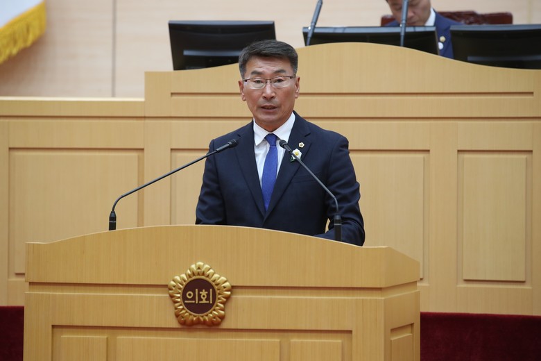 | ▲ 김재철 전라남도의원이 10월 20일, 본회의장에서 건의안에 대해 제안설명을 하고 있다<전라남도의회 제공> |