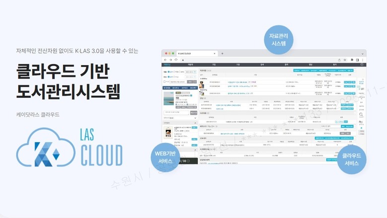 전국 공공도서관 최초로 클라이언트-서버*(Client-Sever) 기반의 운영 환경을 클라우드 서비스(SaaS 자료관리시스템)로 전환했다. 수원시 공공도서관 20개 소, 공공도서관 내 도서관 4개소, 사립도서관 1개소 등 25개소에 도입했다.