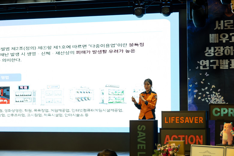 최종 심사 결과, ‘당신의 영업장 안전 온도는 몇℃인가요?’라는 다중이용업소 안전관리에 관한 주제로 발표한 강남소방서 서애리 소방교가 대상을 수상했다.