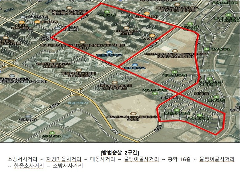 방범 순찰 서비스는 유동 인구가 적은 이주자택지 주택가를 중심으로 운영하며, 범죄 예방 및 도시 안전성 강화를 통한 스마트도시 환경 조성에 기여할 것으로 기대된다.