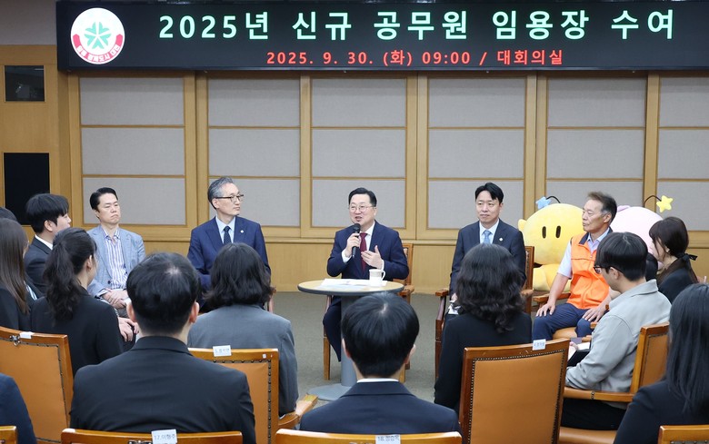 [대전 세계타임즈=이채봉 기자] 이장우 대전시장은 30일 시청 대회의실에서 2025년도 대전시 새내기 공직자 44명에게 임용장을 수여했다.