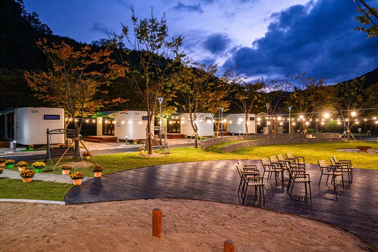 | ▲ 청량산 수원캠핑장 내 글램핑 시설 전경. |
