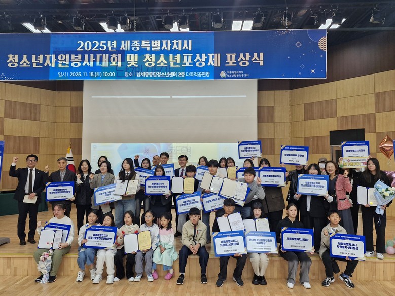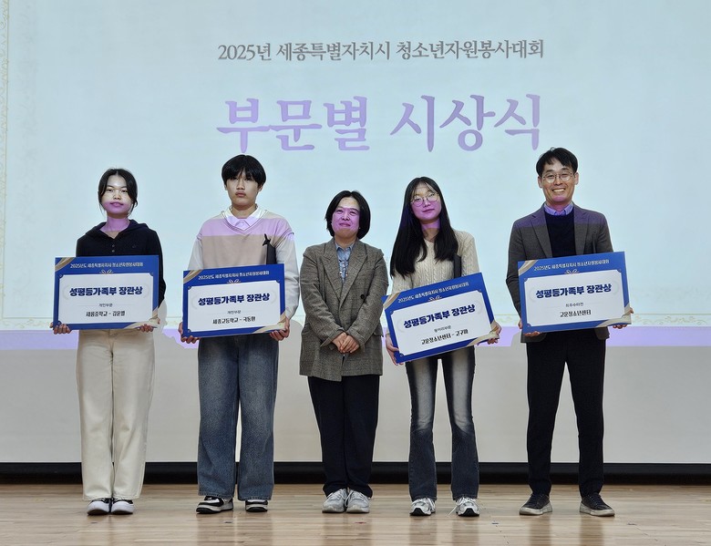 [세종 세계타임즈=이채봉 기자] 세종특별자치시 고운청소년센터(센터장 김태일)가 지난 15일 남세종종합청소년센터에서 열린 ‘2025 세종특별자치시 청소년자원봉사대회’에서 동아리 부문과 우수활동터전(기관) 부문에 각각 성평등가족부 장관상을 수상했다.