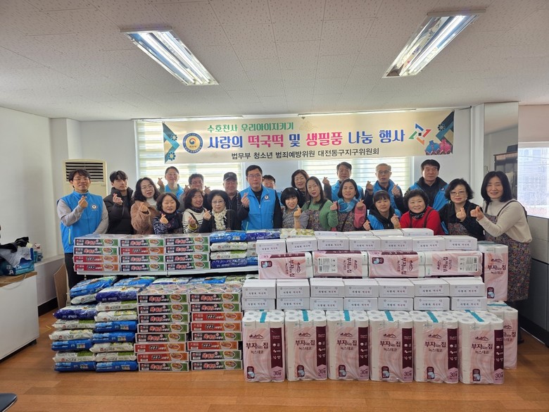 [동구 세계타임즈=이채봉 기자] 대전 동구(구청장 박희조)는 지난 12일 청소년범죄예방위원 대전동구지구위원회(이하 동구청소년범죄예방위원회) 주관으로 관내 결연 청소년 가정을 위한 ‘사랑의 떡국떡 나눔행사’를 개최했다고 밝혔다.