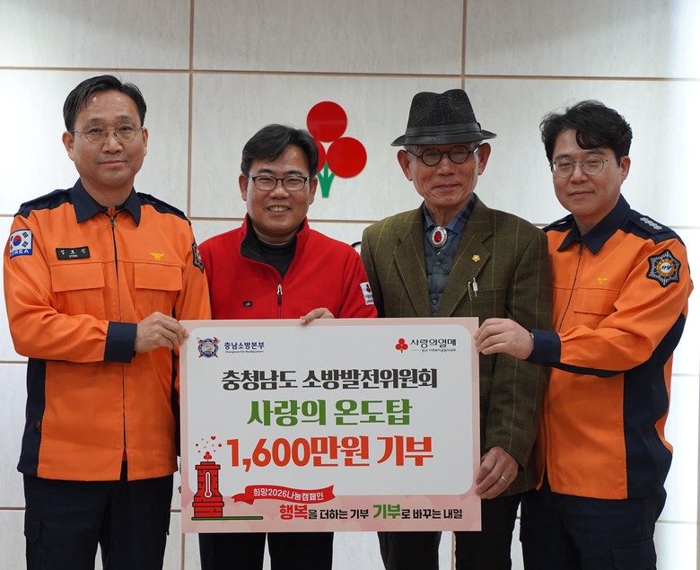 [충남 세계타임즈=이현진 기자] 충청남도 소방발전위원회(소방정책 자문·협의기구)는 지난 30일 연말연시 이웃돕기 성금 모금인 ‘사랑의 온도탑’에 성금 1600만 원을 기탁했다고 1일 밝혔다.