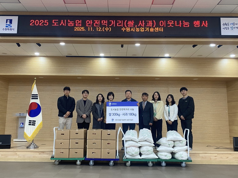수원시농업기술센터에서 수확한 탑동시민농장 쌀(300kg)과 수원시 과수공원 사과 180kg을 수원시자원봉사센터를 통해 관내 취약계층에 전달할 예정이다.