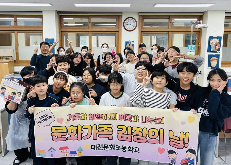 [대전 세계타임즈=이채봉 기자] 대전문화초등학교는 11월 21일, ‘문화가족 김장의 날’ 행사를 진행했다. 올해로 3회째를 맞이하고 있는 이 행사는 교육복지실과 학생회가 함께 준비하여 희망학생과 그 가족들이 참여해 직접 김장을 하고, 만든 김치를 인근 경로당과 지역 복지관에서 추천한 노인가구, 교내 다자녀 가정에 전달하는 행사이다. 특히, 경로당과 노인가구에는 학생들이 직접 마음을 담아 쓴 편지도 함께 전달하여 더욱 따뜻한 행사가 되었다.
