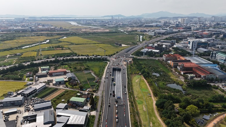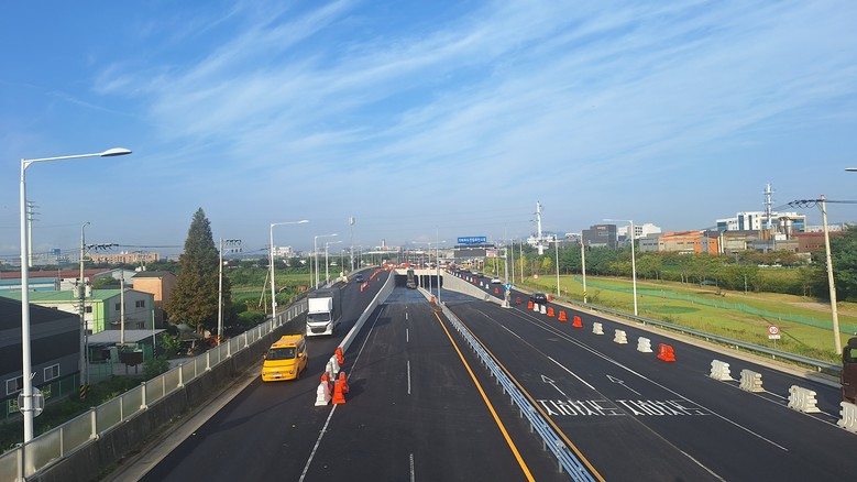 ‘국지도 84호선 초지대교~인천간 도로건설공사’는 김포시 대곶면 대명리와 양촌읍 대포리를 연결하는 총 길이 7.88km, 폭 20~27m(4~6차로), 교차로 8개소(지하차도 1개소), 교량 7개소를 신설하는 사업으로 총사업비 2,538억원이 투입됐다.