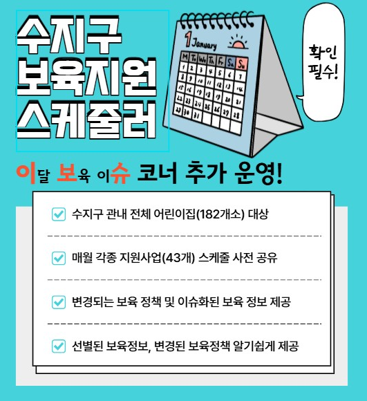 보육지원 스케줄러는 어린이집과 보육 교사 등을 대상으로 각종 지원 사업의 일정 등을 사전에 공유해 대상자들이 빠짐없이 신청할 수 있도록 돕고자 마련됐다.