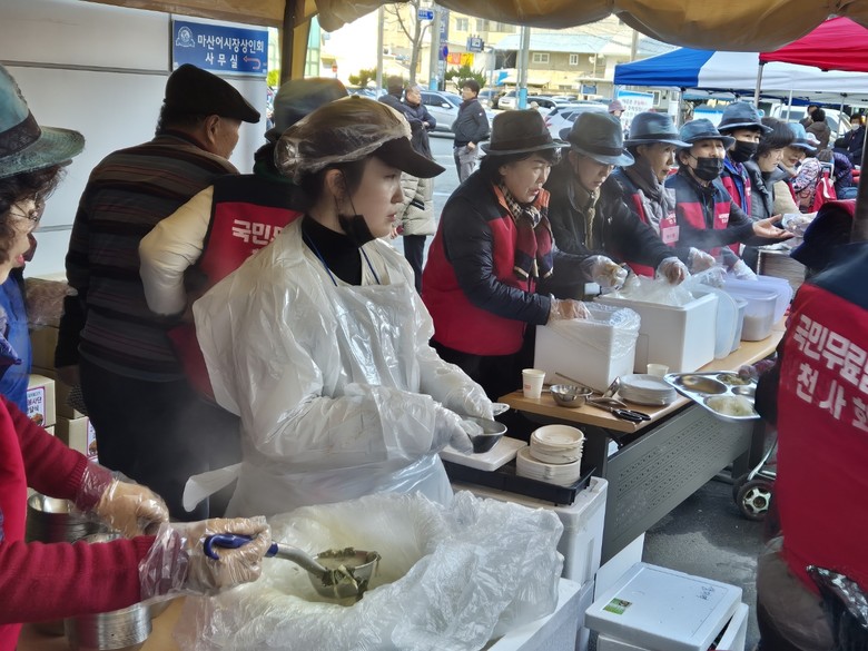 [세계타임즈]최성룡기자 ='경남여성봉사단(회장 이수진) 주최하고 한우리 국민 밥상이 주관하는 희망과 사랑을 나누는 김치담그기와 김장 나눔 전달식 행사가 12월 7일 마산어시장 상인회 주차장에서 실시했다.