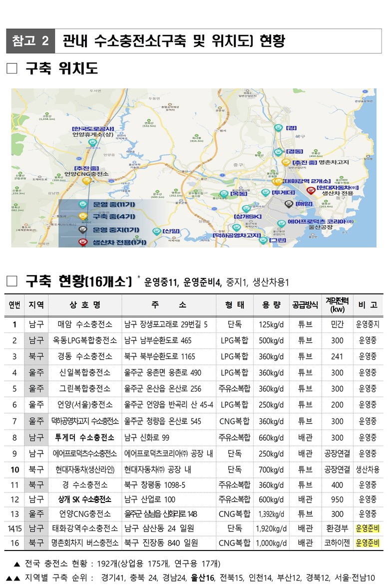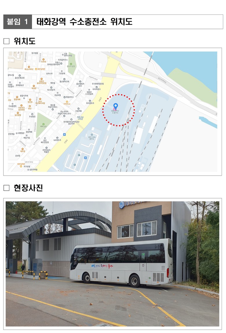 ‘태화강역 수소충전소’는 ‘환경부’의 대기환경 개선 및 수소 에너지 도시, 친환경 자동차 중심도시 조성에 기여하고자 저공해 자동차 고급을 위한 국비 보조사업의 일환으로 추진됐다.