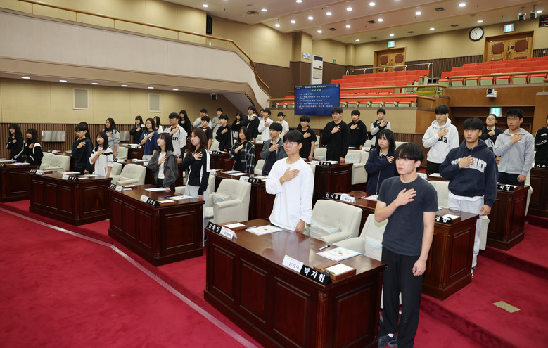 청소년 의회교실은 학생들이 1일 도의원이 되어 본회의장에서 의장 선거, 안건처리, 2분 자유발언 등 의정활동을 체험하는 프로그램이다.