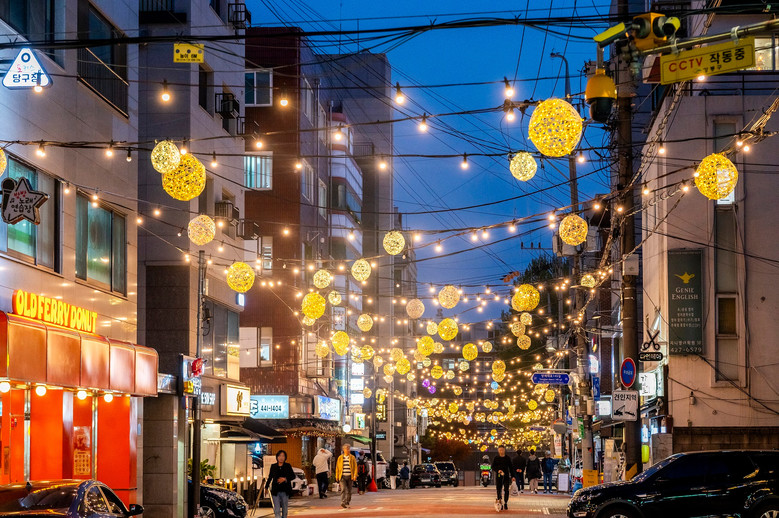 | ▲ 야간 보행로를 조성한 명리단길 모습 |