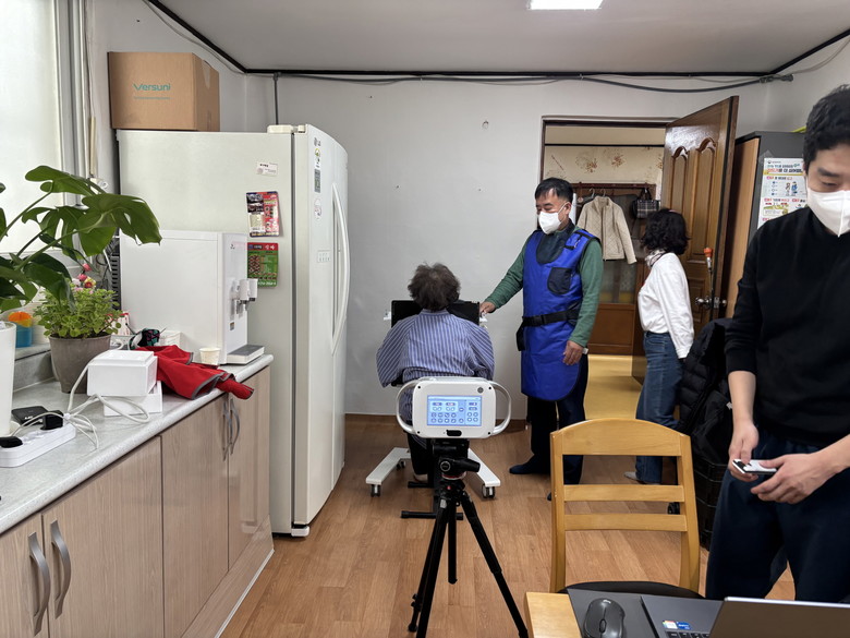 | ▲ 영통구보건소 관계자가 경로당을 방문해 어르신들 대상으로 결핵검진을 하고 있다. |