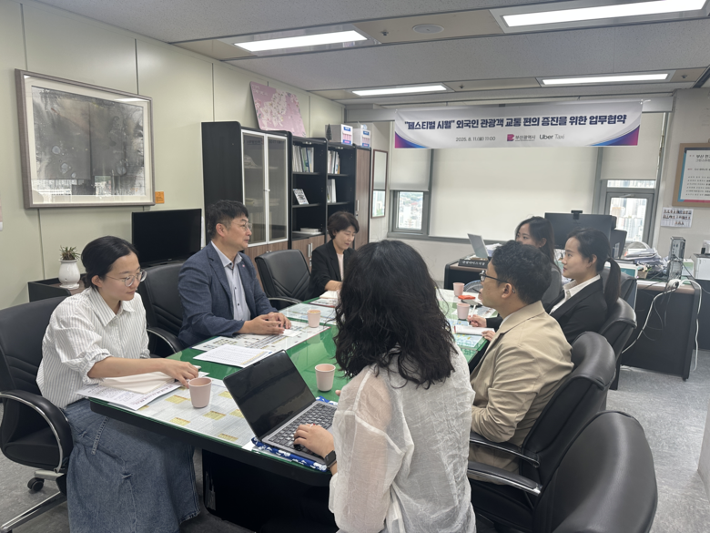 협약식은 어제(11일) 시청에서 시 관광마이스국장과 송진우 우버 택시코리아 총괄 등이 참석한 가운데 열렸다.