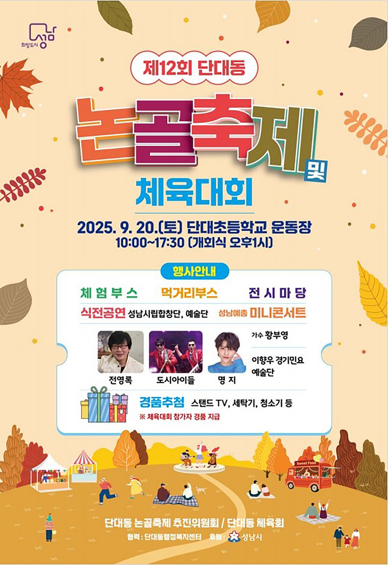 시 관계자는 “이날 행사는 지역 주민들이 직접 기획한 성남시의 대표적인 지역축제”라면서 “성남 시민 모두가 함께 즐기는 만남과 화합의 장이 될 것”이라고 말했다.