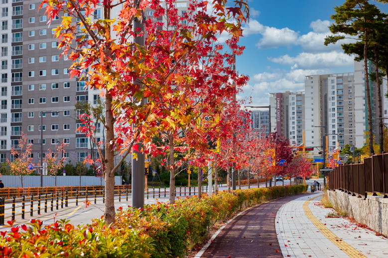 망포동 일원 미국풍나무는 붉은색과 주황색 단풍으로 물들며 가을 특유의 색채를 뽐내고 있다. 광교호수공원로는 중국단풍이 붉게 변해 호수와 함께 가을 분위기를 만들고 있다. 창룡대로·중부대로·효원로는 노란 황금빛 은행나무로 물들었다.
