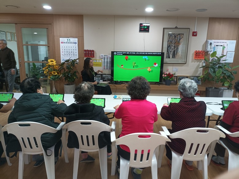 실제로 게임·퍼즐·퀴즈 등을 통한 인지훈련 프로그램이 있다. 단순한 프로그램 참여로 끝나는 것이 아니라, 인지훈련 결과와 건강 측정 데이터를 바탕으로, 필요한 경우 치매안심센터 등 전문 기관의 추가 상담·연계가 이루어지는 촘촘한 돌봄 체계를 구축한다.