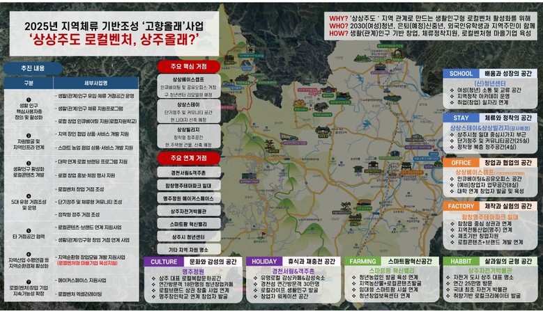 경북도와 상주시가 함께한 ‘상상주도 로컬벤처 상주올래?’사업은 이번 공모에서 지역 내 창업과 취업을 활성화해 정착을 유도하는‘로컬벤처’분야에 선정되어 국비(특교세) 10억원을 확보하게 되었다.