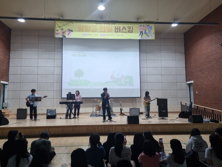 [강원도 세계타임즈=김민석 기자] 양양고등학교(교장 문선옥)는 12일(금) 오후 4시 양양군 체육관에서 양야고등학교 학생 및 교직원을 대상으로 제4회 한빛 버스킹을 개최했다.