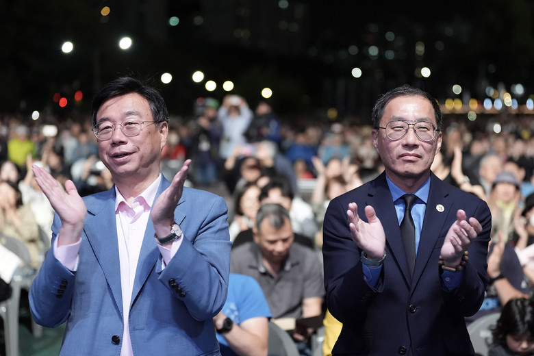 신상진 성남시장과 프레드 정 미국 풀러턴 시장은 야탑동 탄천 일대에서 화려한 음악의 뮤직 페스티벌과 수백 대의 드론이 밤하늘에 연출하는 환상적인 라이트 쇼를 관람했다.