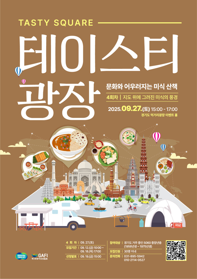 이문무 경기도 농업정책과장은 “경기도 먹거리광장은 단순한 먹거리 체험을 넘어, 음식을 매개로 세계를 마주하고 여행의 감동을 나누는 장소가 되기를 바란다”며 “특히 이번 테이블이 중장년 세대에게는 자신이 걸어온 삶의 여정을 되돌아보고, 그 안에서 작은 위로를 얻는 시간이 되기를 기대한다”고 말했다.